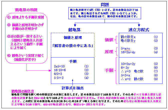特に指摘したいのは「計算」という「手順」はできても「計算の意味」を無視する方が多い事です。この例が先に説明した「リンゴとミカンの合計を求める計算」です。日本の学校では「「リンゴとミカンの合計をいくつですか」という質問がまかり通っています。尚、補足すれば、ChatGPTも「リンゴとミカンの合計は何個です」と答えます。困ったものです。
